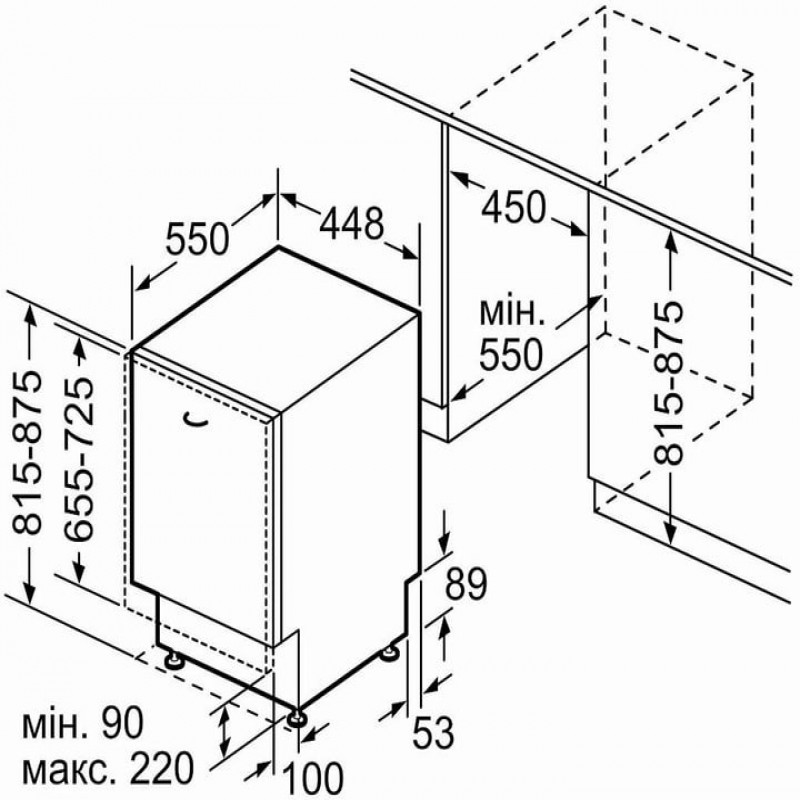 • Розміри ніші для вбудовування (ВxШxГ), см